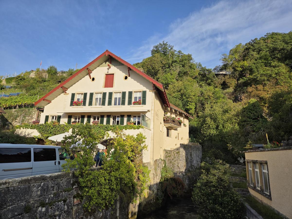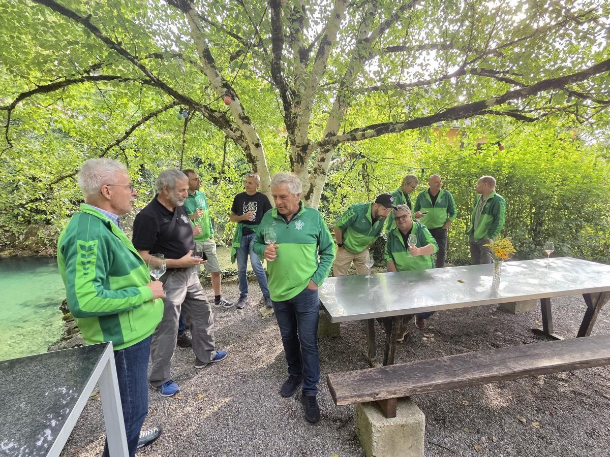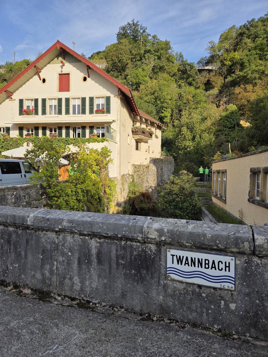 In Twann besuchten wir das Weingut Twannbach der Familie Klötzli. Adrian führt den Betrieb bereits in der 4. Generation und hat mit seinen Weinen auch schon diverse Auszeichnungen gewonnen. Er erzählte uns über seinen Betrieb, die Weingeschichte am Bielersee und natürlich über seine Weine. Selbstverständlich durften wir seine Weine auch degustieren. Neben/hinter dem Haus hat er ein ganz flauschiges Plätzchen mit einem grossen Teich vom Twannbach, einem Kiesplatz und Bäumen (Foto sagt alles).