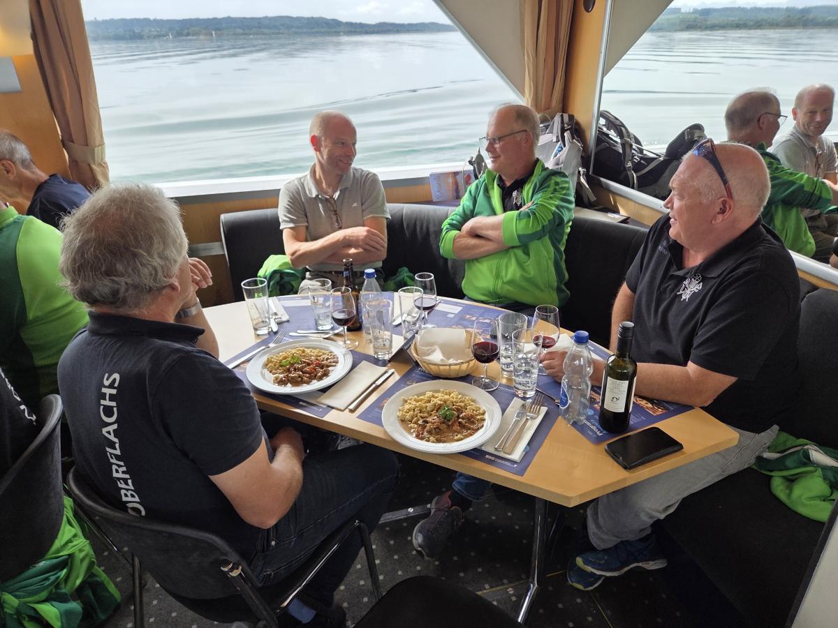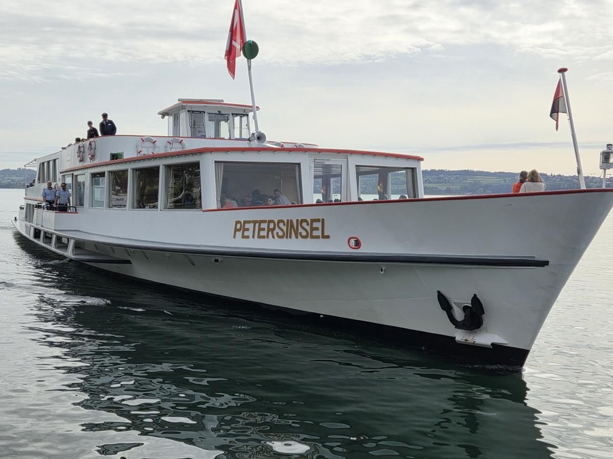 Von Twann fuhren wir mit dem Schiff via Bielersee, Zihlkanal, Neuenburgersee, Broyekanal und Murtensee nach Murten. Das Mittagessen genossen wir während der 3-Seen Fahrt.