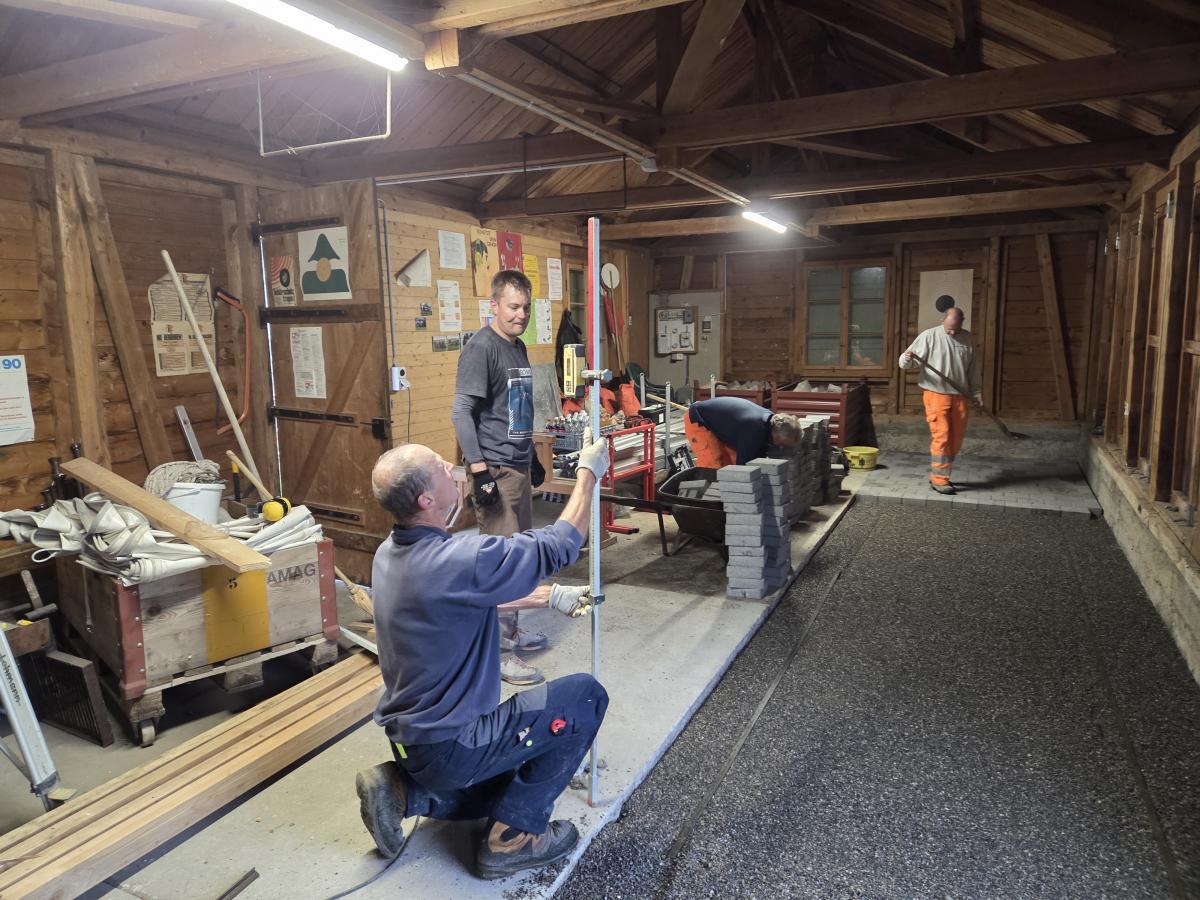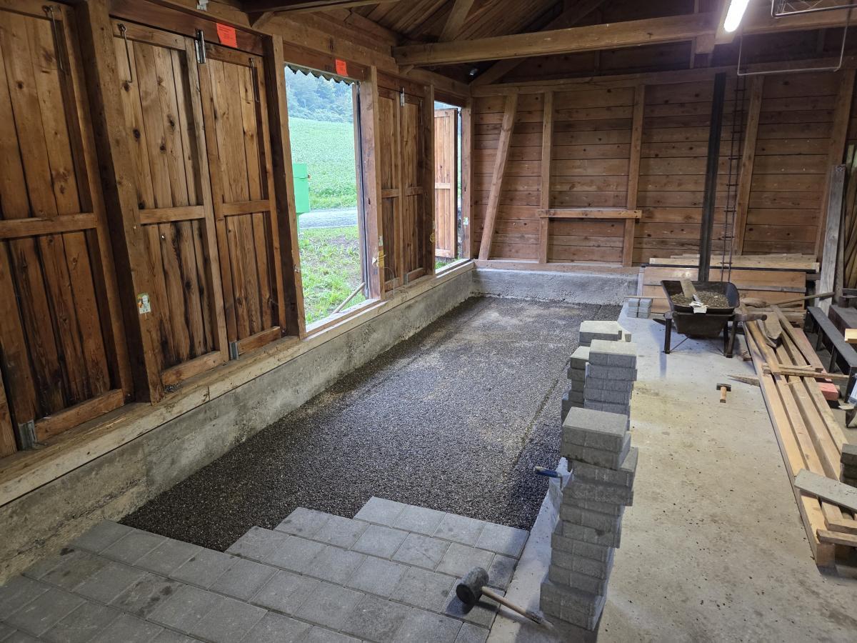 In 3 Etappen haben wir den Boden im Schützenhaus Oberflachs bereit gemacht, so dass das Schützenhaus in Zukunft als Lagerraum genutzt werden kann.