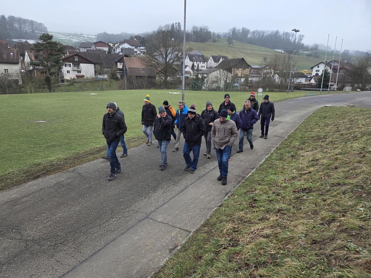 Am Sonntag 18. Januar 2026 nahmen wir mit 22 Teilnehmern am Sternmarsch in Villnachern teil. Nach einem schönen und erfrischendem Marsch mit einem kleinen Zwischenhalt im Weiler Wallbach (Danke Cici für die Stärkung😊), trafen wir pünktlich um 10.30 Uhr bei der Turnhalle Villnachern ein.